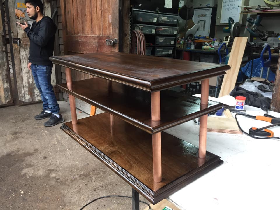Mammen Custom Furniture and Carpentry was commissioned to create this set of display shelves to fit specific measurements, and to fit the cafe’s 1920’s speakeasy style on a budget. Mammen designed the shelves, stained in a nice vintage hue, and added some unique edging and doweling to emphasise the speakeasy style for the client.