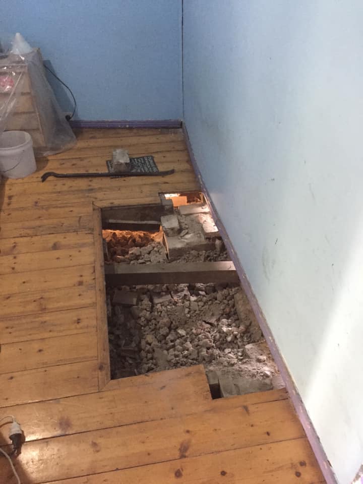 Mammen Custom Furniture and Carpentry removed the old and cracked fireplace slabs from fireplaces long since gone. We lifted the sagging foundations and the floor was able to be restored to it’s former glory. We did the best we could to reuse what we could, sanded it all back to new and matched the timber and stain before varnishing. We salvaged and matched the broken trims and finished of with a new coat of paint! A totally fresh and new start for the clients home!